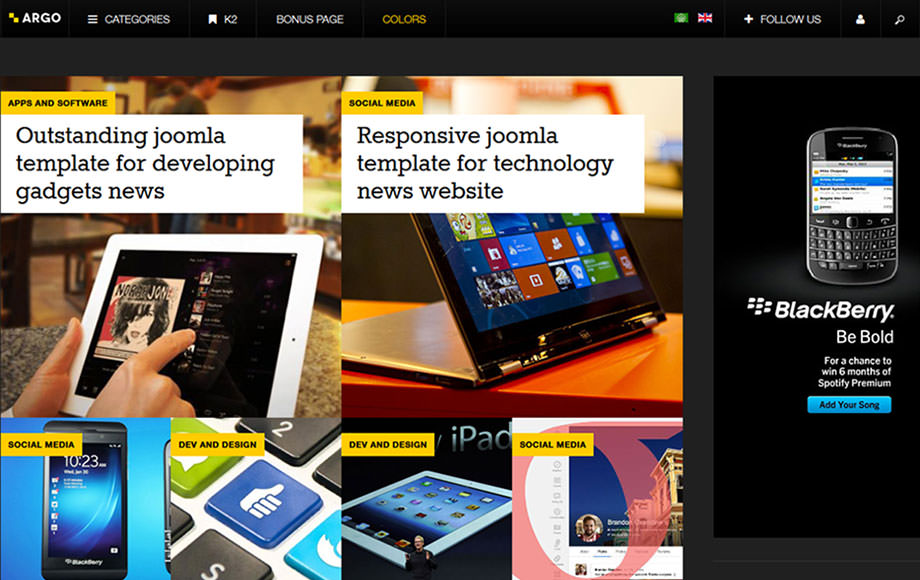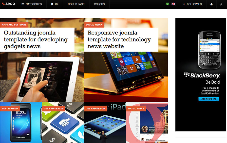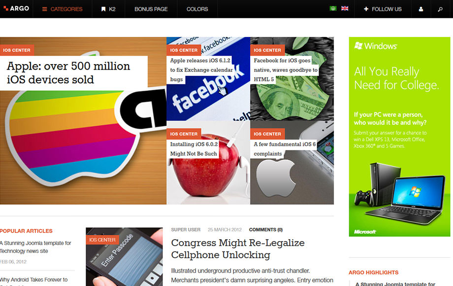 JA Argo is inspired from the latest Flat Design trend, which has been widely adopted by the Joomla community. It's where your content can truly shine through the fancy designs and typo.