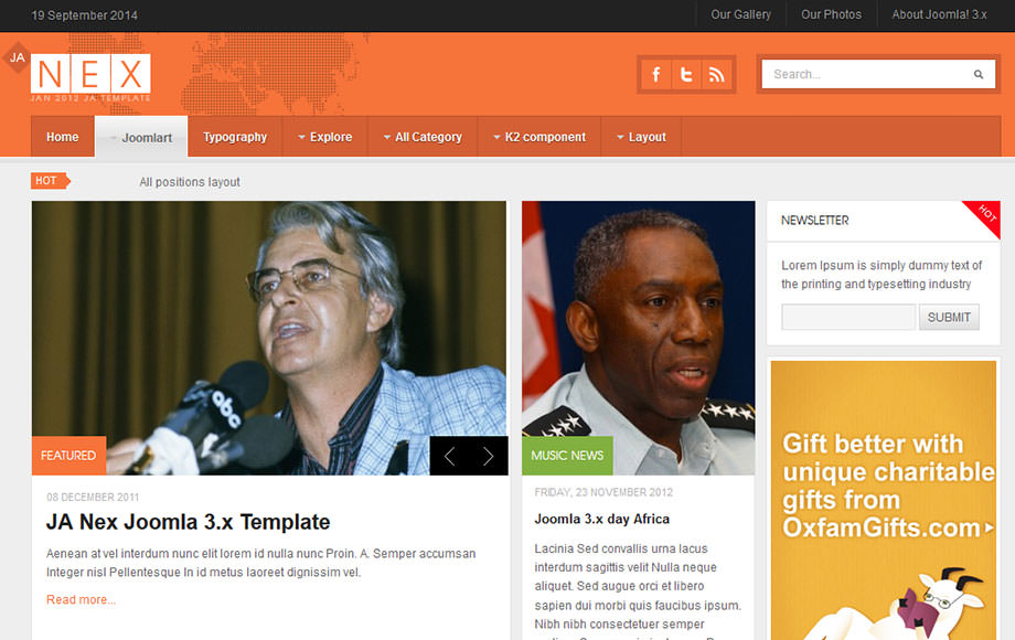 We have our best selling Teline Joomla template series for news and magazine going for years. JA Nex is our 2012 edition added into this line.