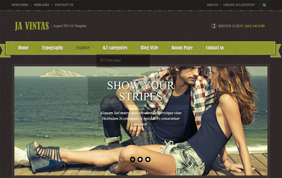 Come to JA Vintas theme you can choose not 1 but 4 different menu styles supported in this theme. They are Megamenu, CSS menu, Dropline menu and slipt menu.