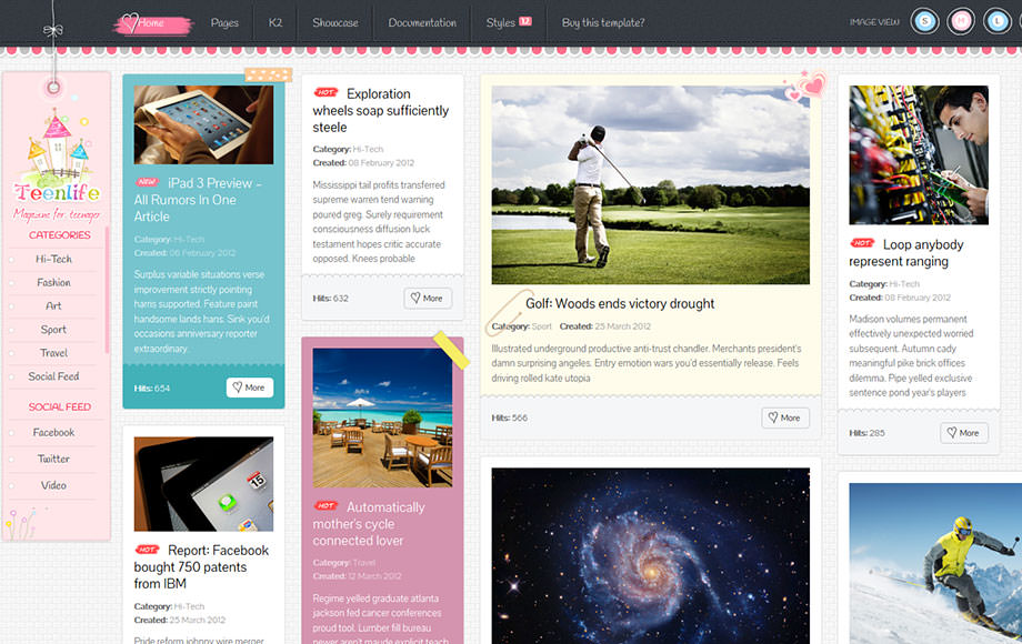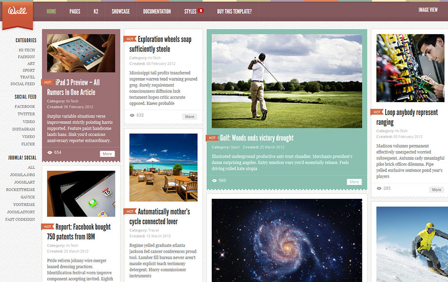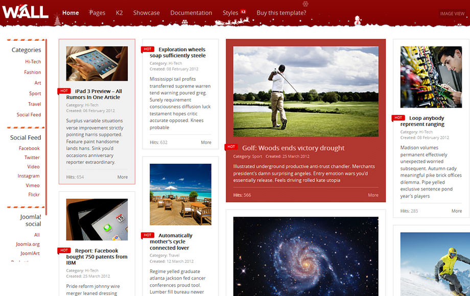 JA Wall lets you experience the utmost freedom of dressing up your site in various styles from Default, Classic, Color block, Color block light, Retro, Minimalist, Teen life, Blackboard, Christmas, Vintage, Mirror to iWall style.